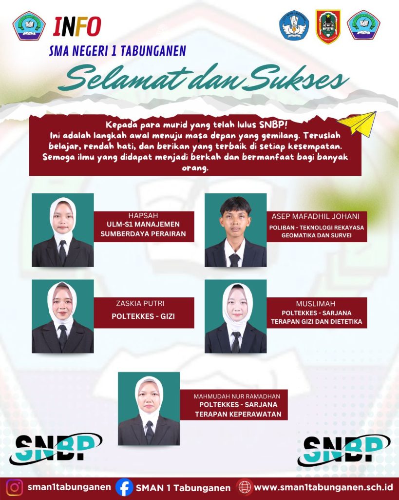 TABUNGANEN, 1 April 2026 – Kabar membanggakan kembali menyelimuti keluarga besar SMAN 1 Tabunganen. Menyusul pengumuman resmi yang dirilis serentak melalui laman snpmb.id pada Selasa, 31 Maret 2026 pukul 15.00 WIB, sejumlah siswa-siswi terbaik kami dinyatakan lulus dalam seleksi masuk perguruan tinggi negeri melalui jalur prestasi. Tahun ini, SMAN 1 Tabunganen berhasil meloloskan siswa-siswi berprestasi […]